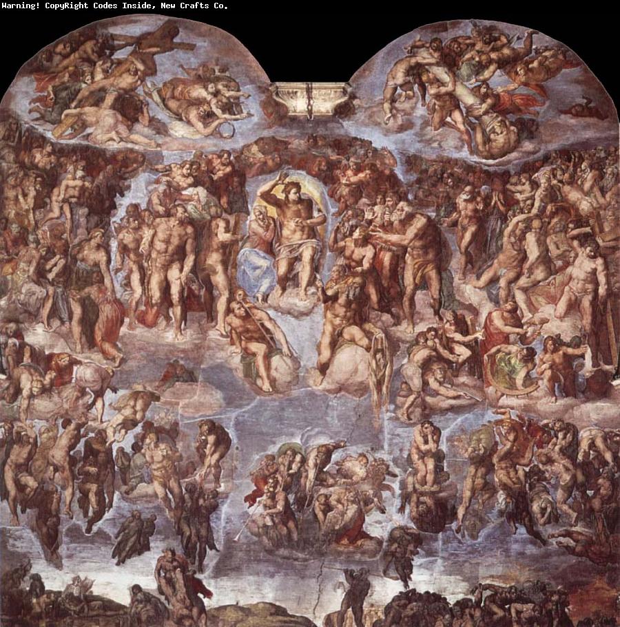 Όλη η περιοχή χωρίστηκε σε τμήματα ζωγραφισμένων αρχιτεκτονικών κορνιζών και εκμαγείων, για δύο λόγους. Πρώτα για να μας εξιστορήσει τη δημιουργία του κόσμου, τον Αδάμ και την Εύα, το προπατορικό αμάρτημα, την εκδίωξη και τον κατακλυσμό. Και μετά για να δοξάσει τον άνθρωπο σαν δημιούργημα παντοτινής ευγένειας, ομορφιάς και δύναμης. Το αρχιτεκτόνημα στόχευε να λειτουργήσει σαν σύστημα που συνέδεε τους τοίχους με την οροφή με διαδοχικές αψίδες και ημικυκλικά τοξοειδή ανοίγματα. Όλα τα διακοσμητικά μέρη ζωγραφίστηκαν σαν ανάγλυφα για να δώσουν στις νωπογραφίες την αίσθηση του βάθους. Τελειώνοντας ο Μιχαήλ Άγγελος αναγνωρίστηκε παγκοσμίως ως ο σπουδαιότερος εν ζωή καλλιτέχνης, σε μια εποχή μάλιστα που ζούσαν οι δύο άλλοι σύγχρονοί του γίγαντες, ο Λεονάρντο ντα Βίντσι και ο Ραφαήλ.