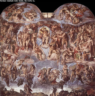Ο πάπας διαφωνούσε με όλα σχεδόν. Κάποια φορά κούνησε το ικρίωμα (σκαλωσιά) και γκρέμισε το ζωγράφο. Έτσι πάρα πολλούς μήνες το έργο σταμάτησε, για να γίνει καλά ο Μιχαήλ. Ύστερα από μεγάλα παρακάλια και χοντρά λεφτά που πέσανε, γύρισε πίσω για να τελειώσει το έργο του, όπως ήθελε αυτός κι όχι όπως ήθελε ο πάπας.